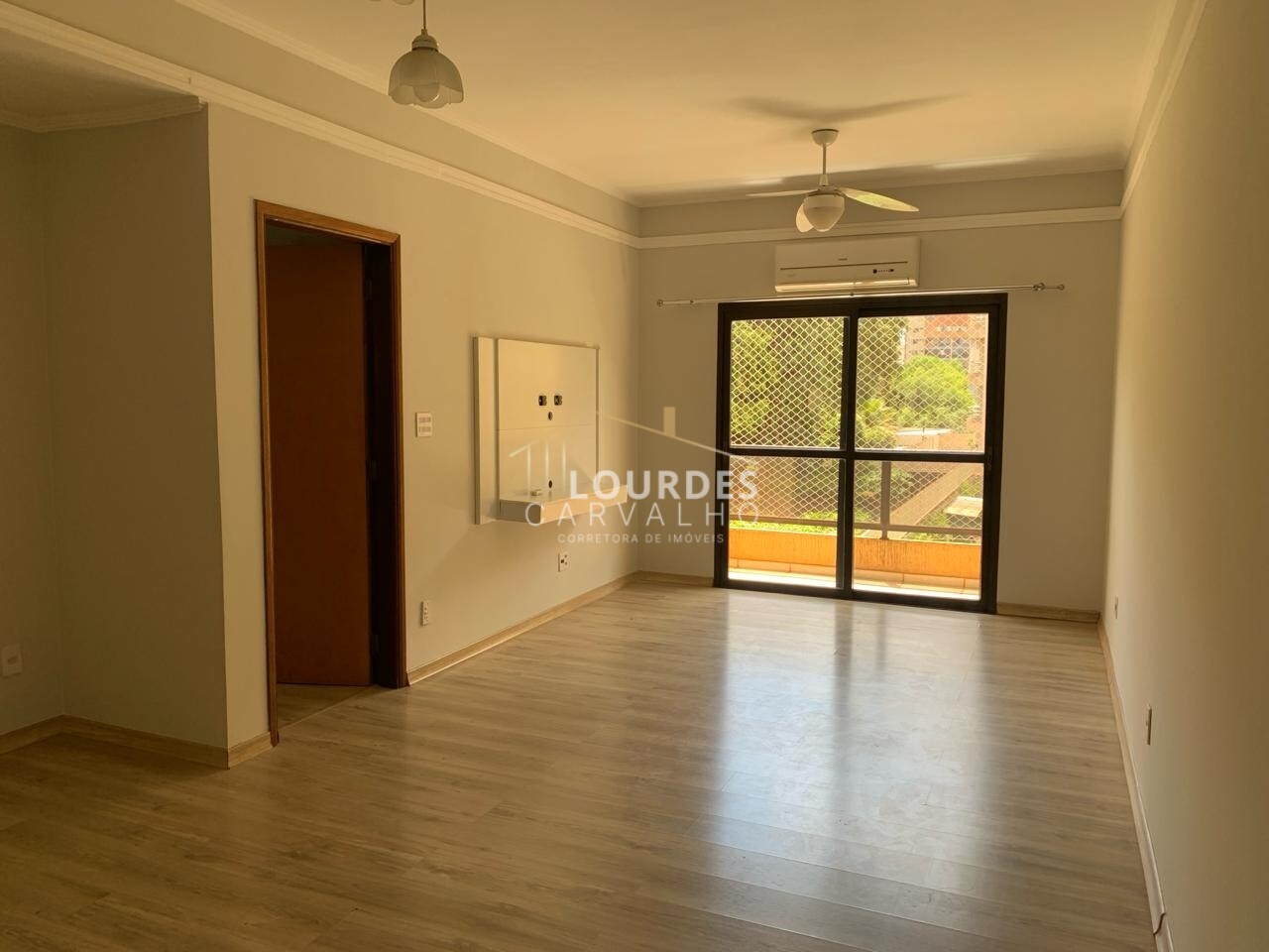 -Sala ampla, 02 ambientes, com ventilador teto e ar condicionado, moldura gesso, sacada;