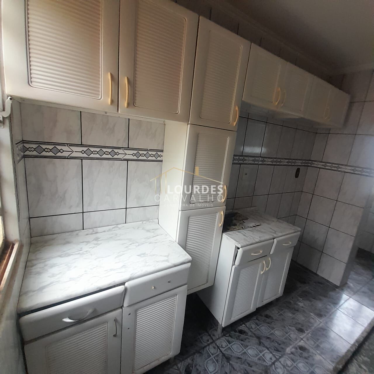 -Cozinha com armários de aço e gabinete, janela para luz e ventilação natural;