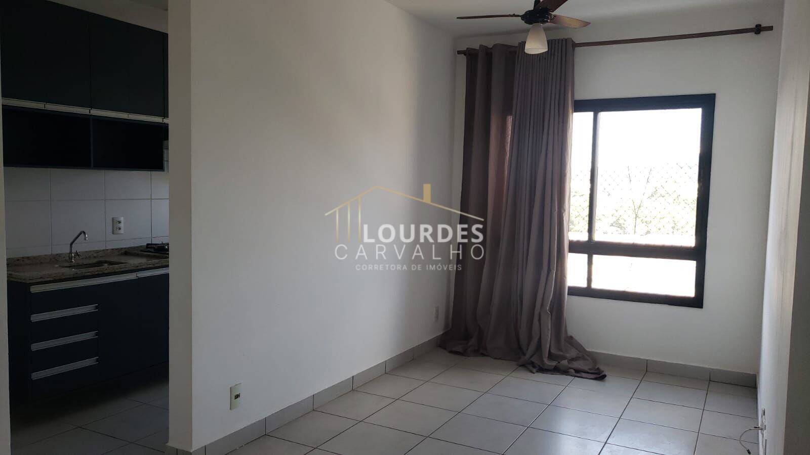 Sala ampla sendo dois ambientes, cozinha e área de serviço.