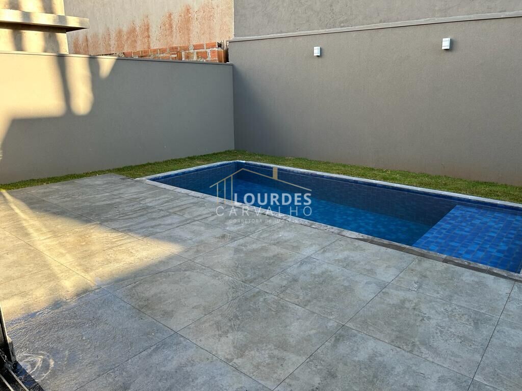 Casa térrea, modelo contemporânea, acabamento alto padrão, rica em armários, paisagismo, infraestrutura para aquecimento solar e pré aquecimento na piscina, entrega completa em armários planejados, torneiras com mono comando e acessórios banheiro, teto rebaixado com iluminação diferenciada;