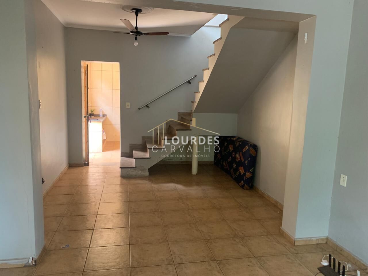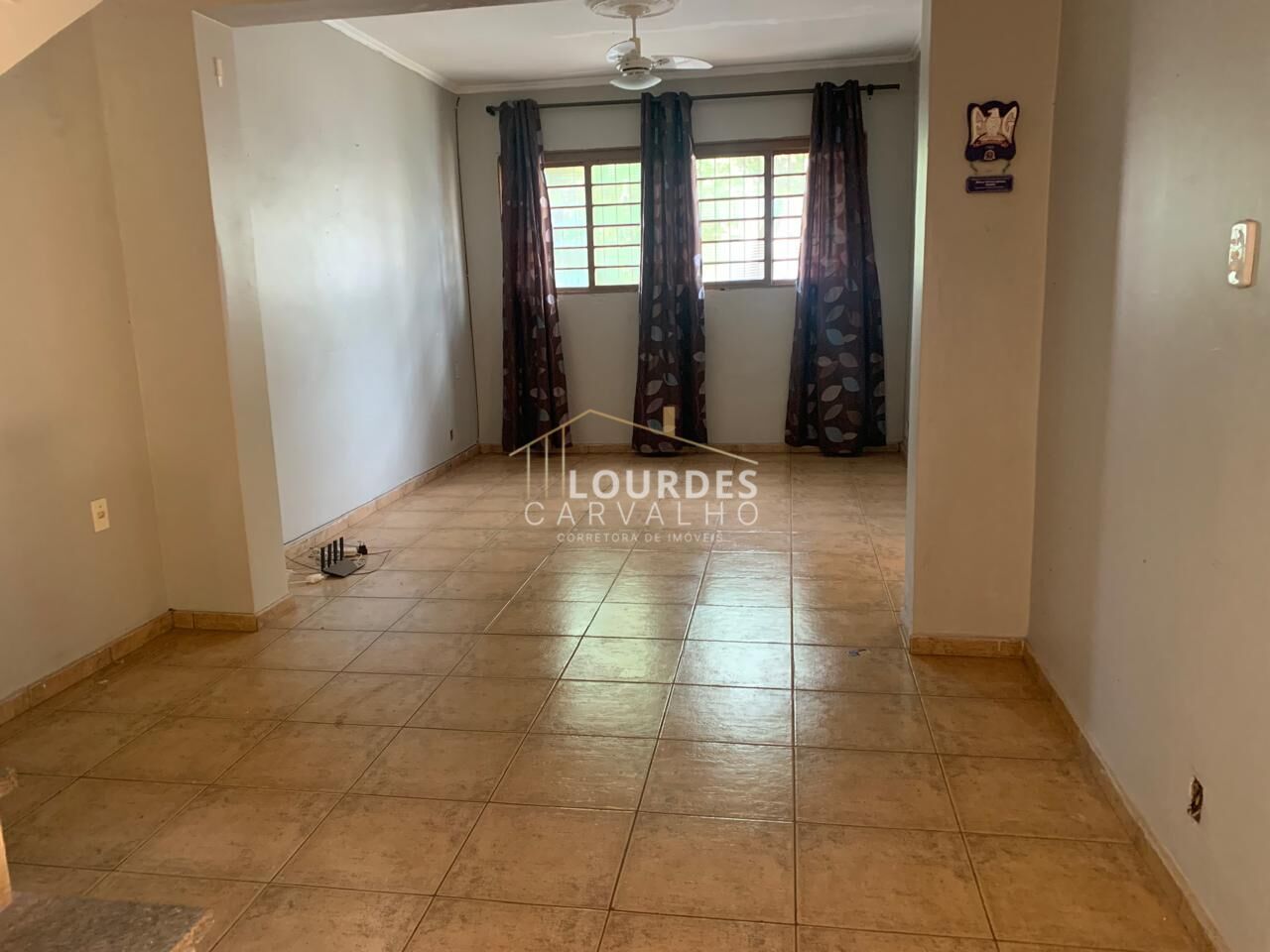 -Sala 02 ambientes, piso cerâmico, vitrô na parede da rua, ventiladores teto;