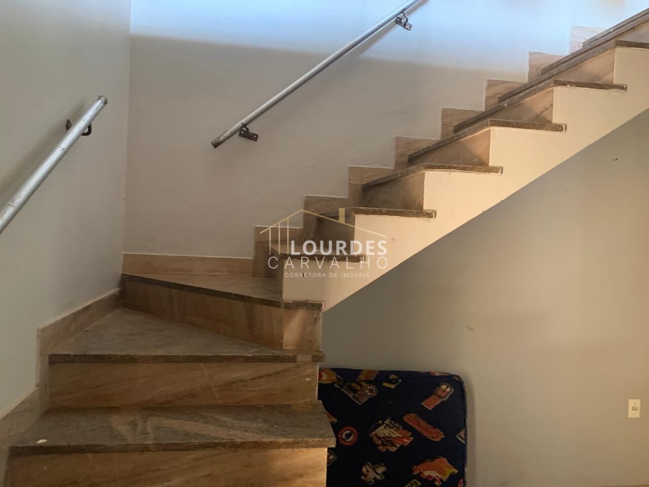 -Escada com piso em mármore;