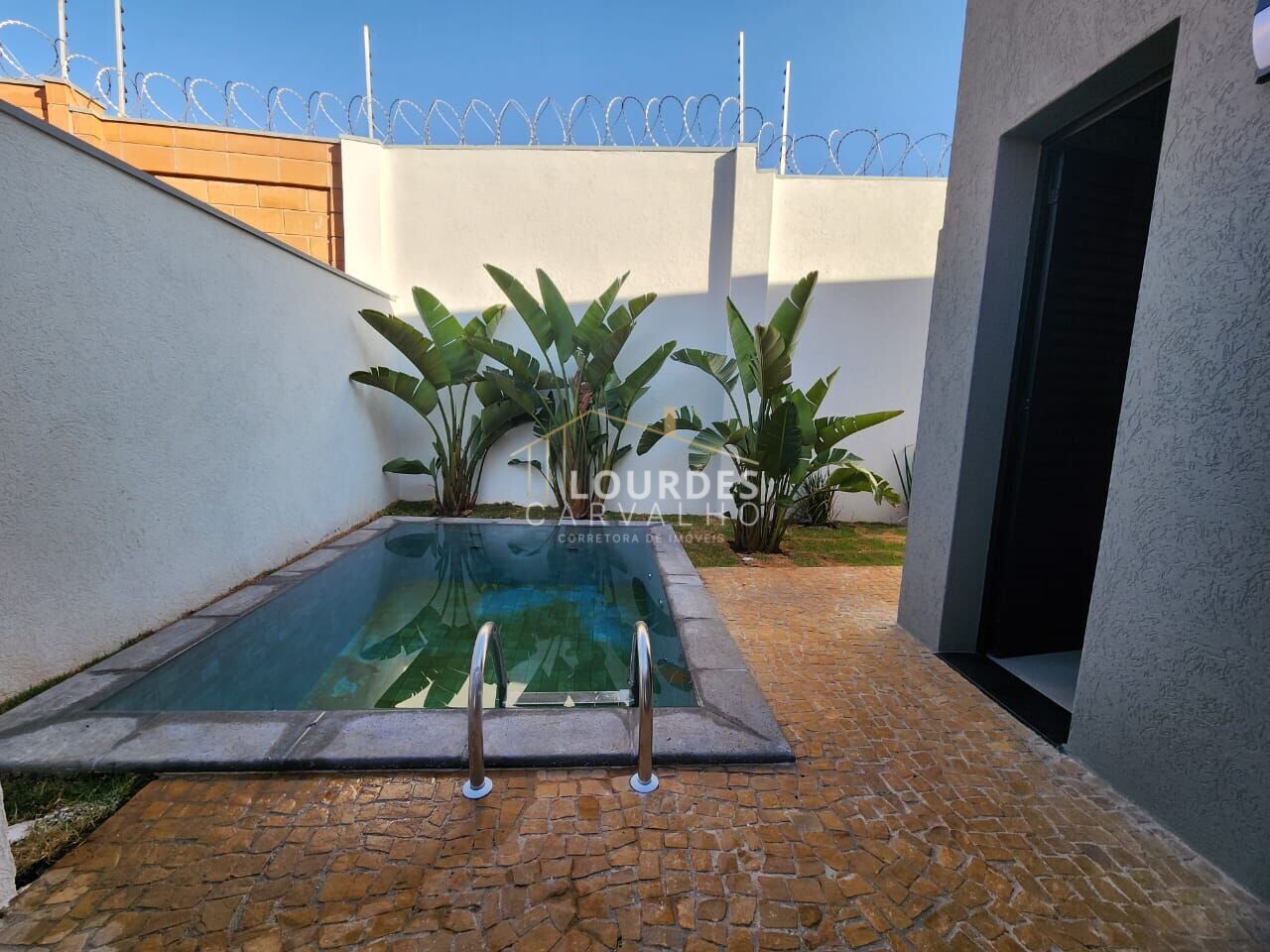Quintal, piscina, banheiro externo, jardim e área de serviço.