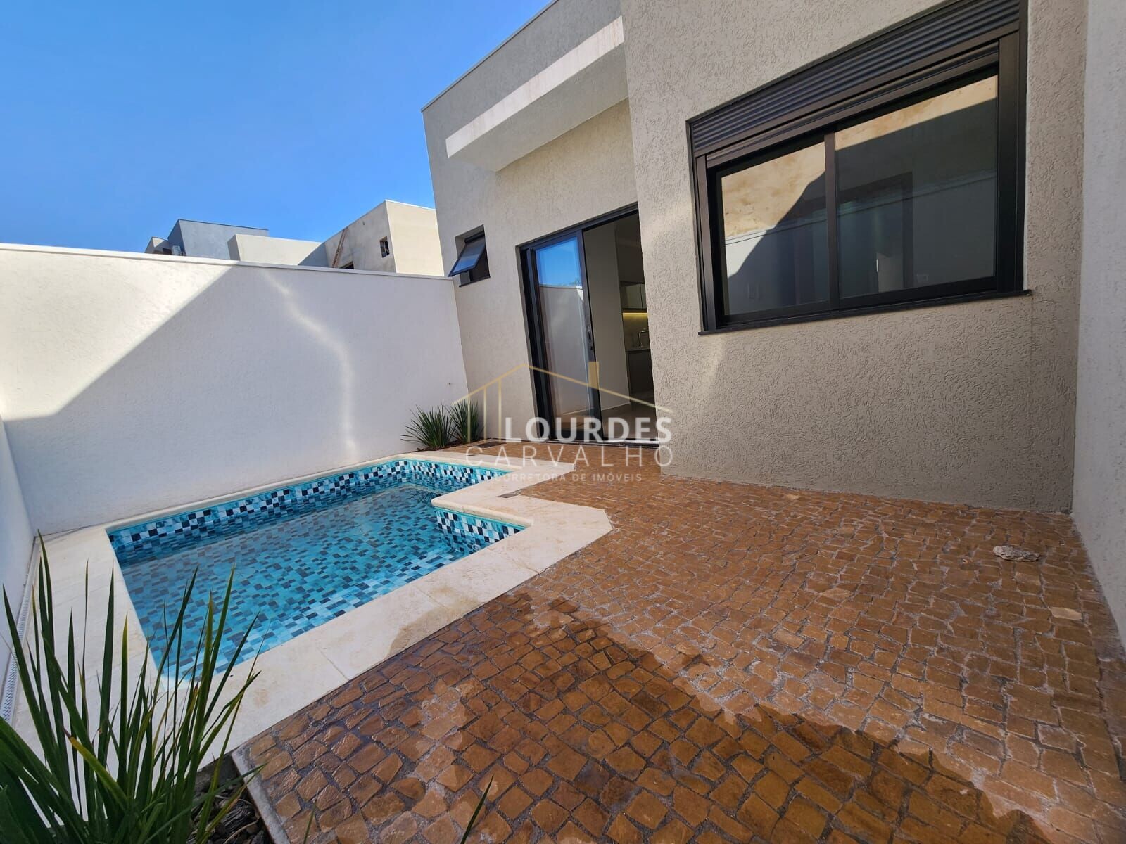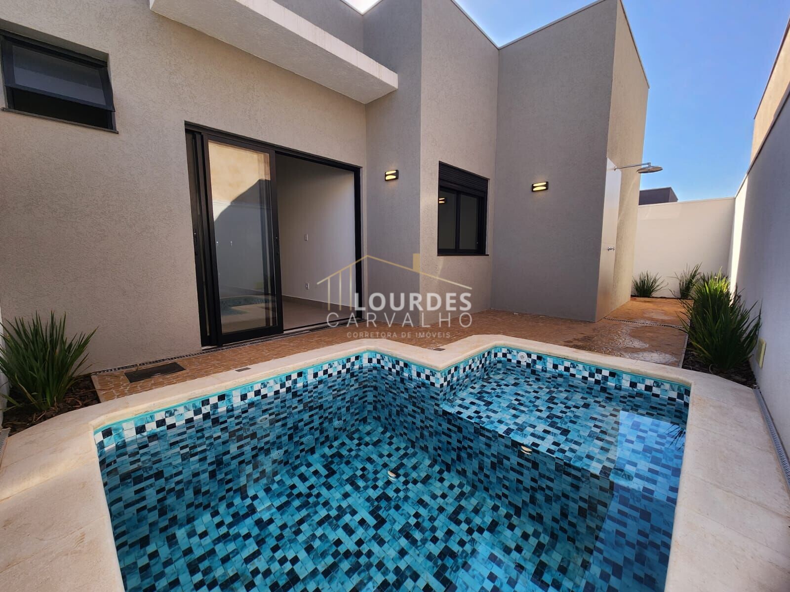 Quintal, piscina, banheiro externo, jardim e área de serviço.