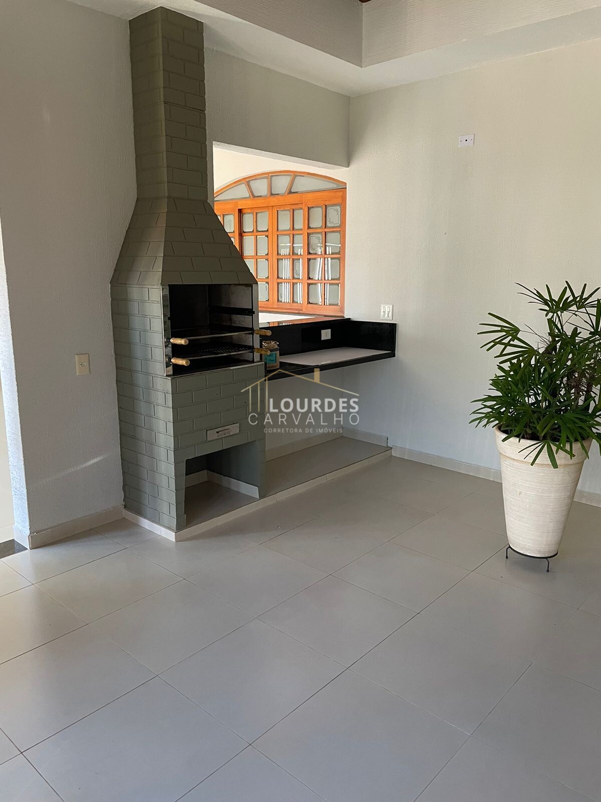 -Área de com churrasqueira e bancada de apoio;